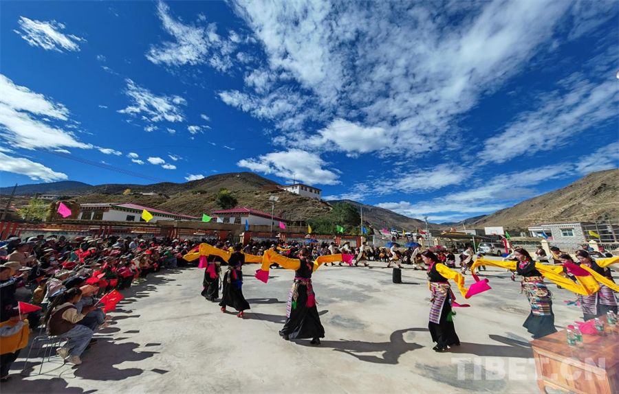 圖為洛隆縣碩督鎮(zhèn)民族團(tuán)結(jié)廣場開展紀(jì)念洛隆解放74周年文藝表演活動