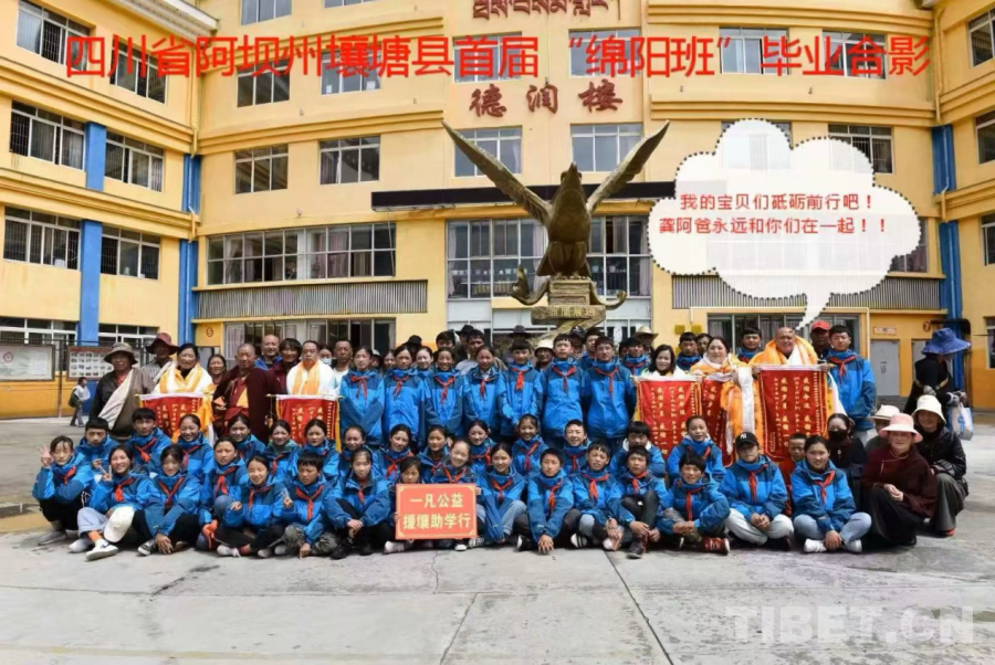 同年,為彌補(bǔ)孩子的英語短板,龔仙彥申請讓長期擔(dān)任高中教學(xué)工作的妻子也到壤塘一起帶“綿陽班”,這也是他期待已久的事情:“能夠和妻子照顧孩子們的生活、輔導(dǎo)孩子們的薄弱學(xué)科,很幸福!”首屆“綿陽班”畢業(yè)后,龔仙彥和身邊的愛心朋友還組建了一支“情牽壤巴拉”愛心團(tuán)隊(duì),來鼓勵(lì)壤塘的孩子們繼續(xù)學(xué)習(xí),他說:“我們將一直陪著孩子們長大、成人、成才!”。