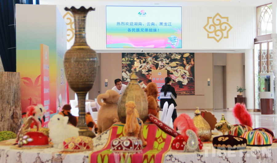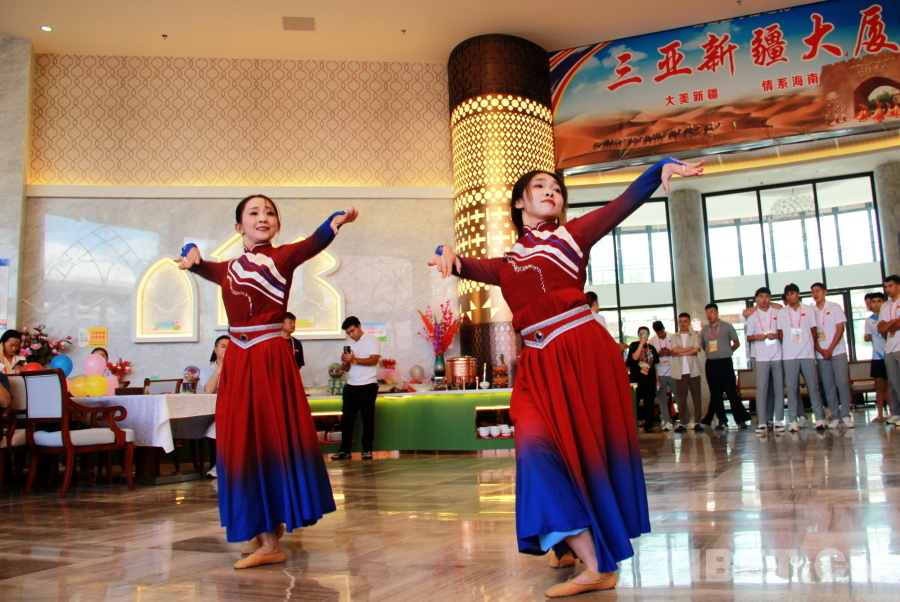 圖為新疆代表團(tuán)在駐地海南三亞新疆大廈精心準(zhǔn)備聯(lián)誼活動 攝影:劉莉