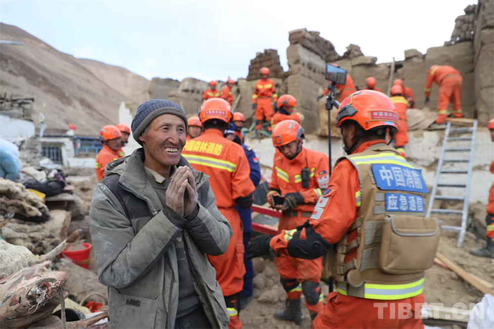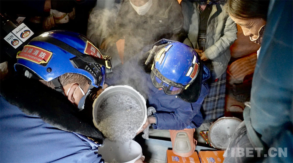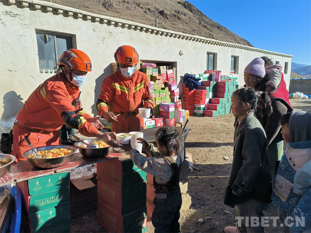 中國西藏網(wǎng)訊 人民至上,生命至上。在平均海拔四千多米的定日地震災(zāi)后現(xiàn)場,西藏自治區(qū)定日縣措果鄉(xiāng)野江村安置點,西藏森林消防總隊日喀則市森林消防大隊始終堅守在現(xiàn)場。隊員們抓緊每一分每一秒開展救援工作,深入倒塌的房屋建筑搜救,合力扛運出當(dāng)?shù)厝罕姷奈镔Y物品,連夜扎牢安置點帳篷,為群眾送去一碗碗熱騰騰的吃食和甜茶……一起走進現(xiàn)場這些讓人動容的瞬間。(中國西藏網(wǎng) 記者/吳建穎 王茜 王妍丹 通訊員/洛桑加措 鄭龍 日喀則市森林消防大隊供圖)