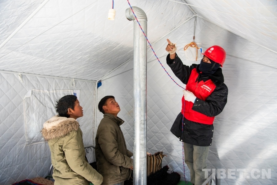 “我們是一支50人組成的支援隊(duì)伍,地震發(fā)生的第一天就已經(jīng)從山南趕到定日縣,分成10多個(gè)組幫助災(zāi)區(qū)排查電力問(wèn)題,為受災(zāi)安置點(diǎn)架設(shè)線路,幫助災(zāi)區(qū)群眾恢復(fù)電力供應(yīng)?!狈?wù)隊(duì)成員次仁旦增說(shuō)。