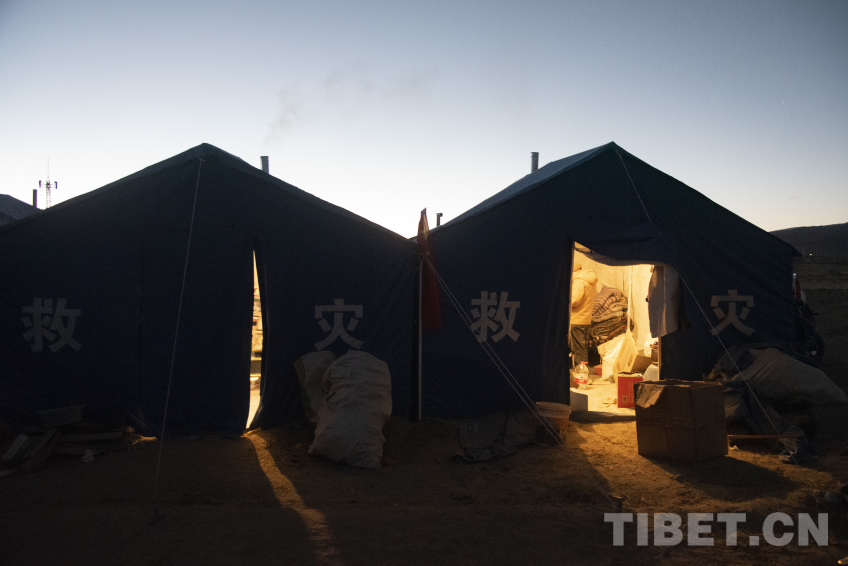 圖為夜晚的受災(zāi)群眾安置帳篷 攝影:趙振宇