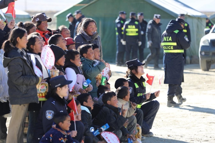 中國西藏網(wǎng)訊 1月10日,是西藏定日縣地震發(fā)生后的第4天。一大早,西藏自治區(qū)日喀則市定日縣長所鄉(xiāng)雜村安置點的移民管理警察就開始忙活起來,他們要和安置點的孩子們一起度過一個難忘的警察節(jié)。