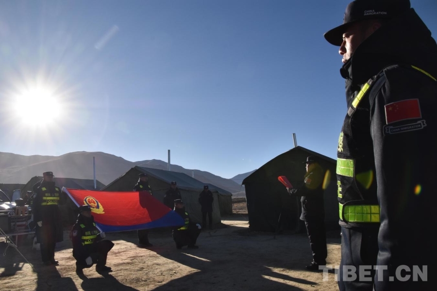 “我是中國人民警察,我宣誓……” 上午10點20分,隨著激昂的宣誓聲響起,日喀則邊境管理支隊的領導帶領參與救援的民警面向警旗,重溫入警誓詞,整個儀式在莊嚴的中國人民警察警歌中結(jié)束。宣誓儀式結(jié)束后,安置點的小朋友們?yōu)閰⑴c救援的民警獻上了潔白的哈達,敬禮致敬。這一刻,警民之間的情感紐帶在莊重的氛圍中進一步拉近。