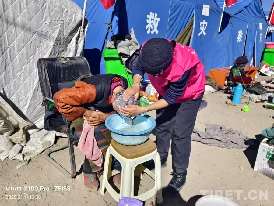 “我們當時的想法就是把老人和孩子集中安置起來,村中的年輕人本來就不多,我們把這兩類人進行集中照料,年輕人就可以正常開展生產(chǎn)和重建工作?!?6歲的次仁吉巴是村中的婦聯(lián)主席兼駐村工作隊員,她在定結(jié)縣薩爾鄉(xiāng)的家在本次地震中也遭受到了損害,但作為村中的一名黨員干部,她選擇在村民最需要她的時候留在白堆村,幫助受災群眾進行安置。