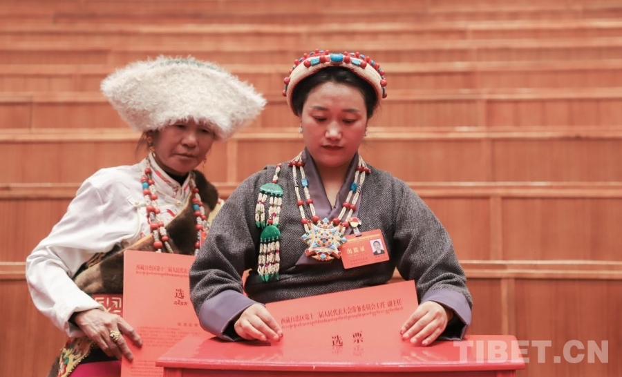 圖為西藏自治區(qū)十二屆人大三次會(huì)議舉行第三次全體會(huì)議
