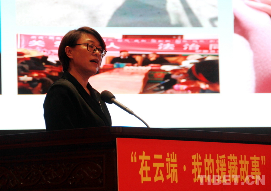圖為攀枝花市農(nóng)業(yè)農(nóng)村局干部揚(yáng)秀英講述該局黨組成員、副局長寧秀蓉的援藏故事 攝影:劉莉