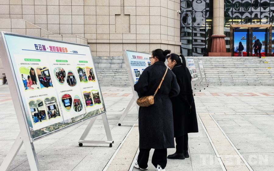 圖為“在云端·我的援藏故事”宣傳活動(dòng)場外,行人正在觀看展板 攝影:劉莉