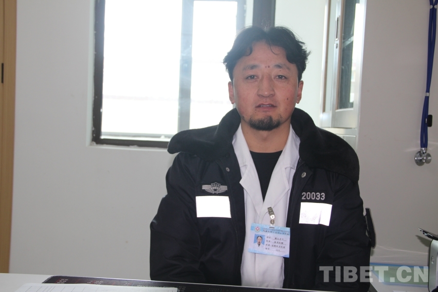 中國(guó)西藏網(wǎng)訊 雪白的大褂外披一件藏藍(lán)色冬裝便衣,這便是瑪曲縣阿萬(wàn)倉(cāng)中心衛(wèi)生院的執(zhí)業(yè)醫(yī)師楊長(zhǎng)才旦。他的胸牌上寫(xiě)著“科室:洛隆村衛(wèi)生室”,表明他是鎮(zhèn)上五個(gè)大隊(duì)其中之一的村醫(yī),集中在中心衛(wèi)生院輪班為病患看診。