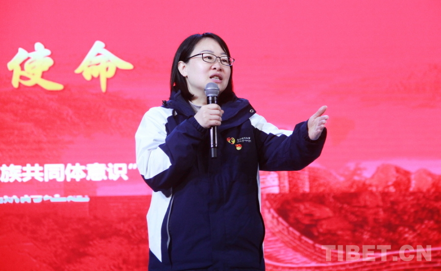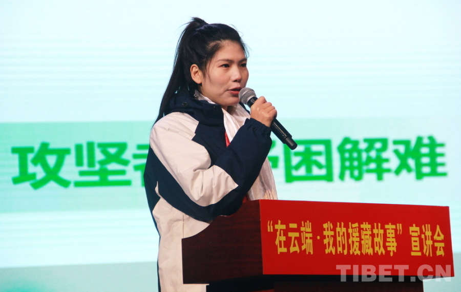 圖為四川省攀枝花市農(nóng)業(yè)農(nóng)村局干部揚(yáng)秀英講述該局黨組成員、副局長寧秀蓉的援藏故事 攝影:劉莉