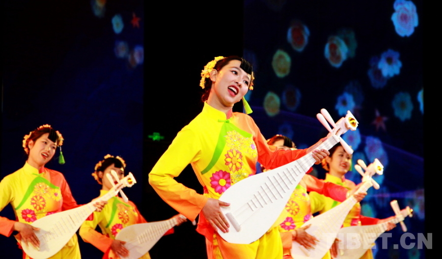圖為“在云端·我的援藏故事”宣傳活動在四川省阿壩州九寨溝縣開展宣講活動現(xiàn)場,演員們以九寨溝縣地方傳統(tǒng)音樂、國家級非物質(zhì)文化遺產(chǎn)南坪曲子中的“采花”調(diào)創(chuàng)作的《盼紅軍》表達(dá)對援藏干部人才的敬意 攝影:劉莉