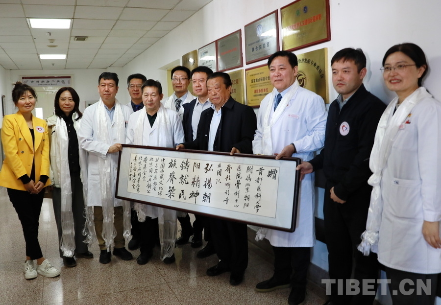 圖為中國西藏文化保護與發(fā)展協(xié)會、“同心·共鑄中國心”組委會、北京啟明星辰慈善公益基金會共同向北京朝陽醫(yī)院贈送牌匾 攝影:劉莉