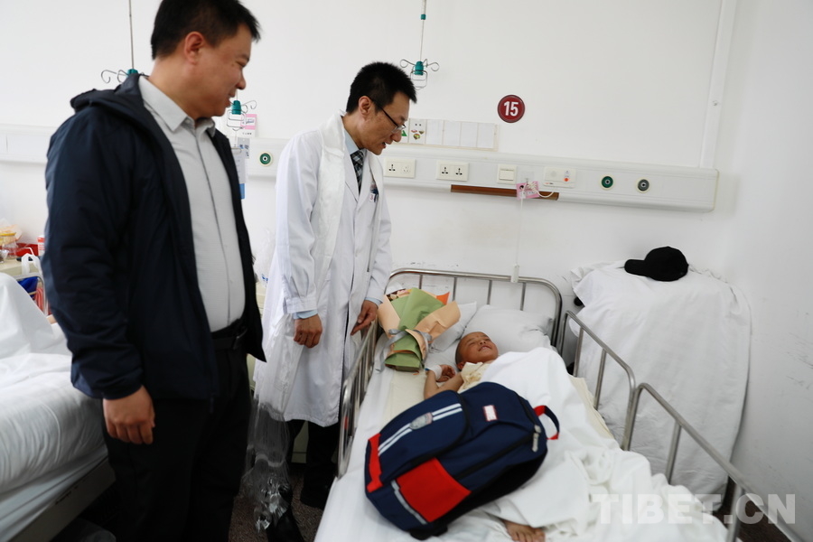 中國西藏網(wǎng)訊 4月1日,“同心·共鑄中國心”組委會執(zhí)行主席金大鵬一行來到首都醫(yī)科大學附屬北京朝陽醫(yī)院,探望在這里接受救治的5名四川省甘孜藏族自治州石渠縣脊柱側(cè)彎患兒,了解手術及恢復情況,并對醫(yī)院的全力治療表示感謝。