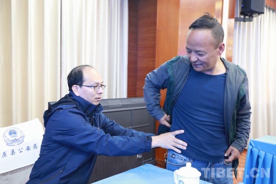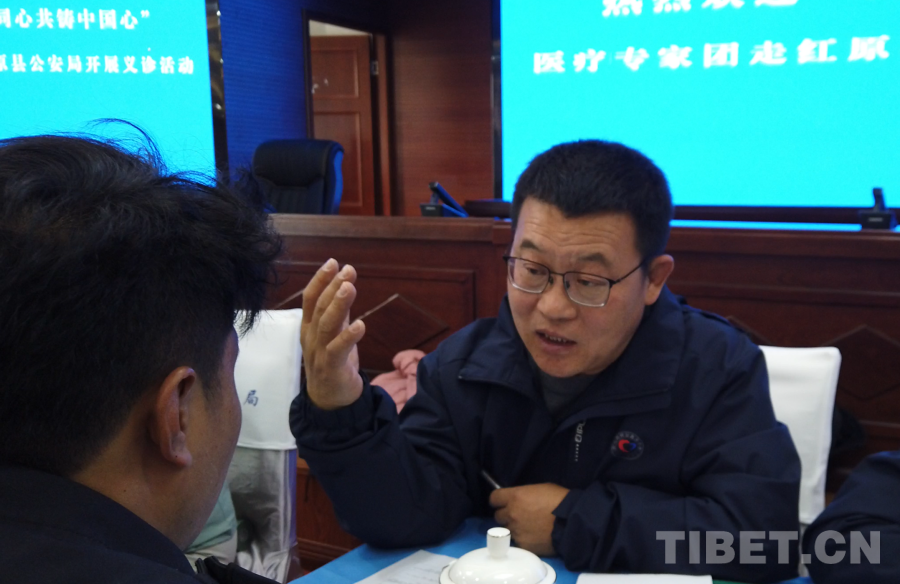 5月17日,在此次活動阿壩州紅原縣現場之一,“紅九團紅二連”來自北京通州區(qū)各醫(yī)院的12位醫(yī)生,在紅原縣公安局面向有就診需求的公安干警展開義診。