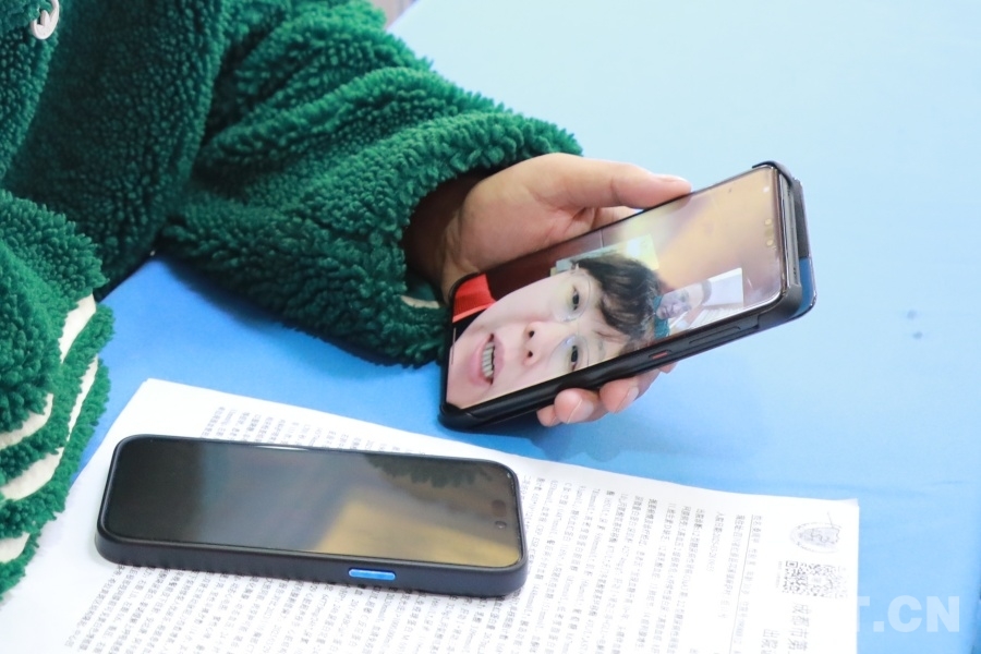 圖為患者通過尹超邦的手機連線北京專家,咨詢下一步診療方案 攝影:楊月云