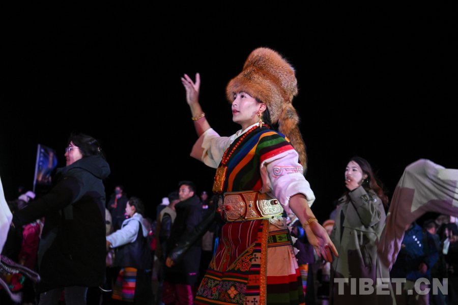 中國(guó)西藏網(wǎng)訊 5月18日晚,“情定當(dāng)雄”篝火鍋莊晚會(huì)在西藏拉薩市當(dāng)雄縣賽馬場(chǎng)舉行。晚會(huì)現(xiàn)場(chǎng),以燃燒的篝火為中心,當(dāng)?shù)孛癖娚碇?jié)日盛裝跳起歡快的鍋莊舞。熱情奔放的旋律,洋溢著濃郁的民族風(fēng)情,讓來客們沉浸式體驗(yàn)鍋莊,感受原生態(tài)淳樸的歌舞表演。(中國(guó)西藏網(wǎng) 記者/旦曲)