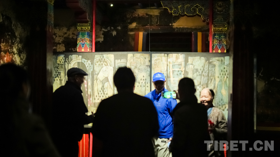 此次展覽中,策展人以“藏地傳統(tǒng)的當(dāng)代轉(zhuǎn)化”為主線,梳理上述不同系列作品,完整呈現(xiàn)出藝術(shù)家的創(chuàng)作脈絡(luò)。展覽標(biāo)題“夢(mèng)瑜伽”,來自《黑經(jīng)書》系列作品的創(chuàng)作故事,清代壁畫環(huán)繞的獨(dú)特古建場(chǎng)域與《黑經(jīng)書》系列作品于光影間輝映,共同營造出西藏藝術(shù)歷史與當(dāng)下交錯(cuò)的鏡像,在搭建橋梁、連結(jié)傳統(tǒng)與時(shí)代精神的同時(shí),也引領(lǐng)觀眾走入高強(qiáng)度的精神性探索。