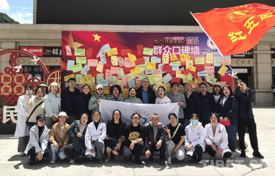 圖為“同心·共鑄中國心”2025阿壩行大型健康公益綜合服務(wù)活動四川省阿壩州首府馬爾康市義診點(diǎn)的醫(yī)療專家們義診結(jié)束后在群眾口碑墻前留影 攝影:吉文革