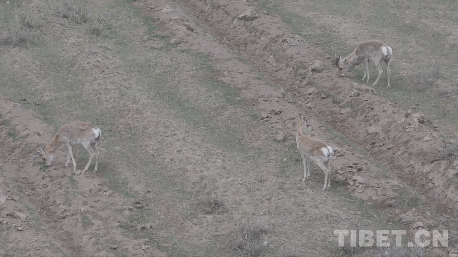 圖為無(wú)人機(jī)捕捉到的珍貴的野生普式原羚影像,它們的夏季被毛呈棕黃色,可以較好地融入周邊環(huán)境,同時(shí)性格警覺(jué),對(duì)風(fēng)吹草動(dòng)都很敏感 青海省文旅廳供圖
