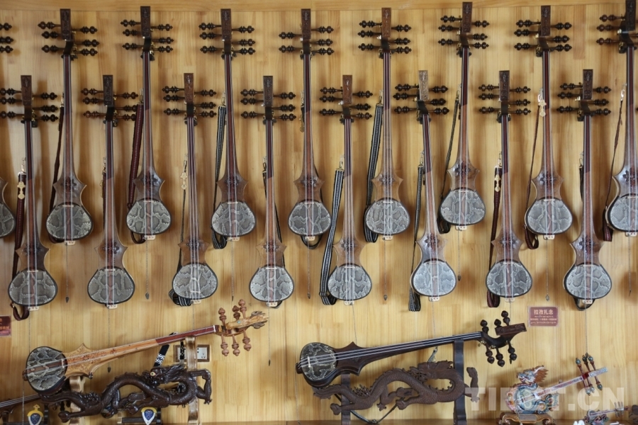 作為“堆諧之鄉(xiāng)”拉孜縣的代表性樂(lè)器,扎念琴制作已有數(shù)百年歷史。合作社負(fù)責(zé)人頓加介紹,一把純手工扎念琴需選用楊木做共鳴箱、花梨木制琴桿,經(jīng)過(guò)刨削、雕鏤、蒙皮等20余道工序,一個(gè)人耗時(shí)6天左右方能完成?!扒兕^雕馬象征吉祥,背面‘巴絡(luò)'凸紋既美觀又防滑,這些都是祖輩傳下的智慧?!比缃?,這項(xiàng)非遺技藝通過(guò)“致富帶頭人+合作社+農(nóng)戶”模式,年生產(chǎn)扎念琴超500把,帶動(dòng)社員人均年收入達(dá)4.5萬(wàn)元。
