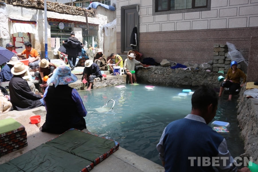 圖為從謝通門(mén)縣達(dá)那答鄉(xiāng)頂嘎村來(lái)泡溫泉的群眾