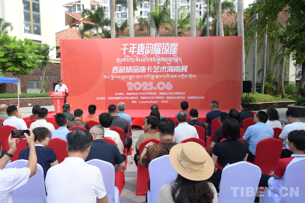 中國西藏網(wǎng)訊 為慶祝西藏自治區(qū)成立60周年,進一步深化西藏與海南兩地文藝界的交往交流交融,6月28日,由西藏自治區(qū)文聯(lián)、海南省文聯(lián)主辦,西藏自治區(qū)美術家協(xié)會、海南省美術家協(xié)會及西藏珠穆朗瑪文學藝術基金會共同承辦的“千年唐韻耀瓊崖——西藏精品唐卡藝術海南展”在海南開幕。