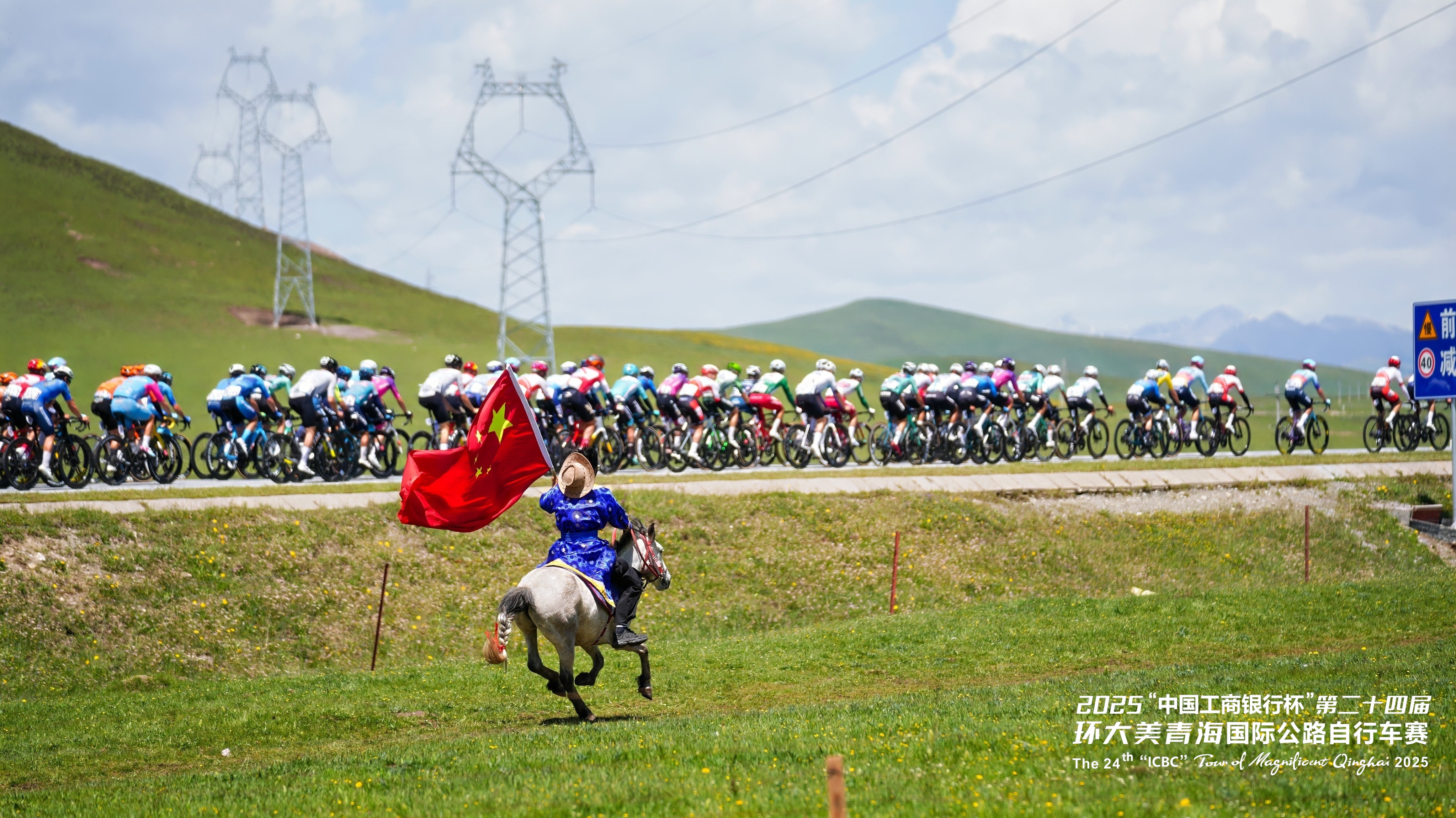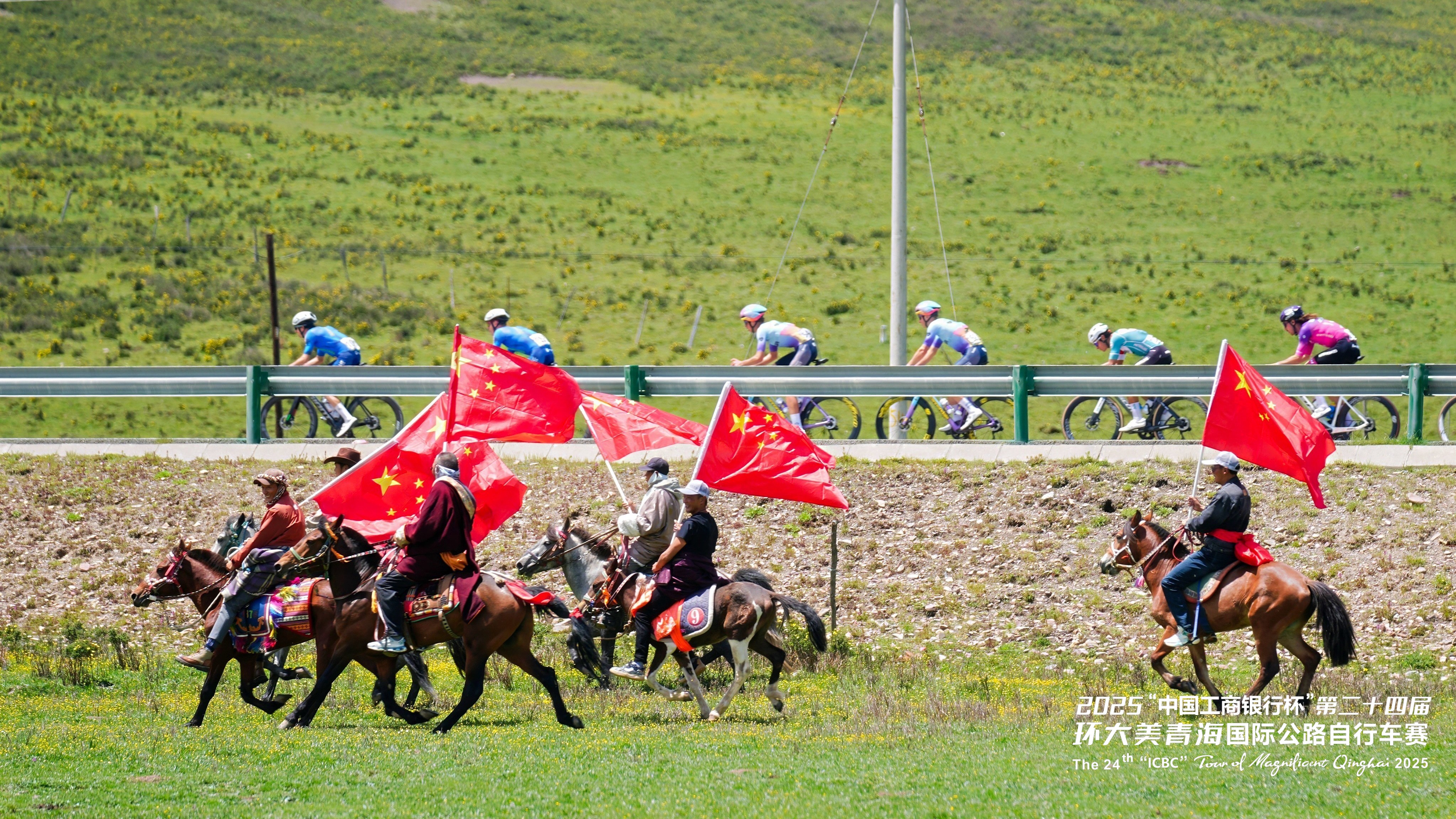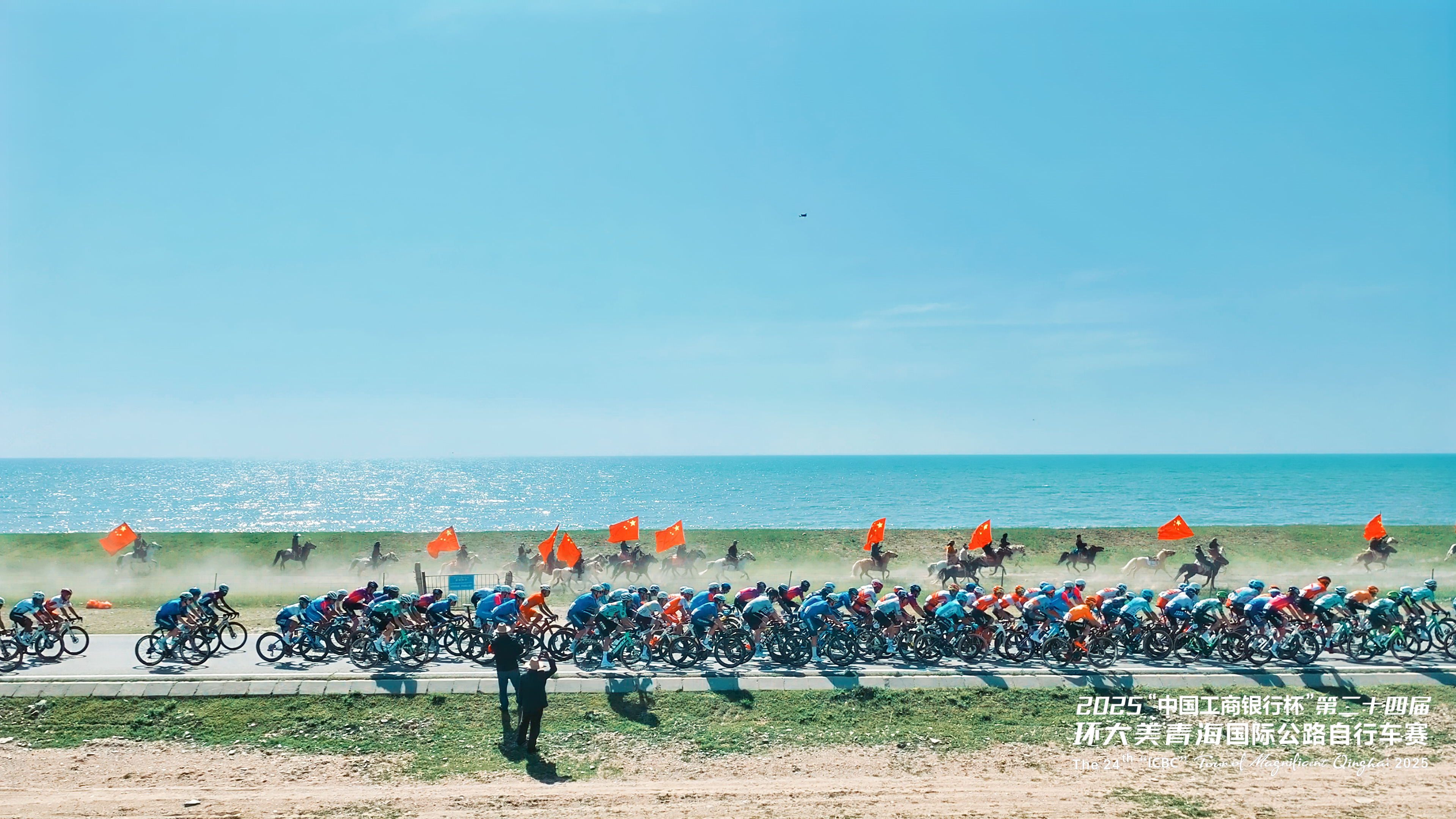 在青海湖畔,牧民們手擎國(guó)旗策馬飛馳,與選手們并肩競(jìng)逐。這一場(chǎng)景也致敬了全球頂尖自行車(chē)賽事環(huán)法自行車(chē)賽中自行車(chē)與馬匹同行的經(jīng)典畫(huà)面——騎馬承載著人類(lèi)悠久的出行記憶,自行車(chē)則象征著現(xiàn)代的綠色出行理念,此刻,在青海湖畔,傳統(tǒng)與現(xiàn)代完美交融,共同譜寫(xiě)著人與自然和諧共處的動(dòng)人篇章。