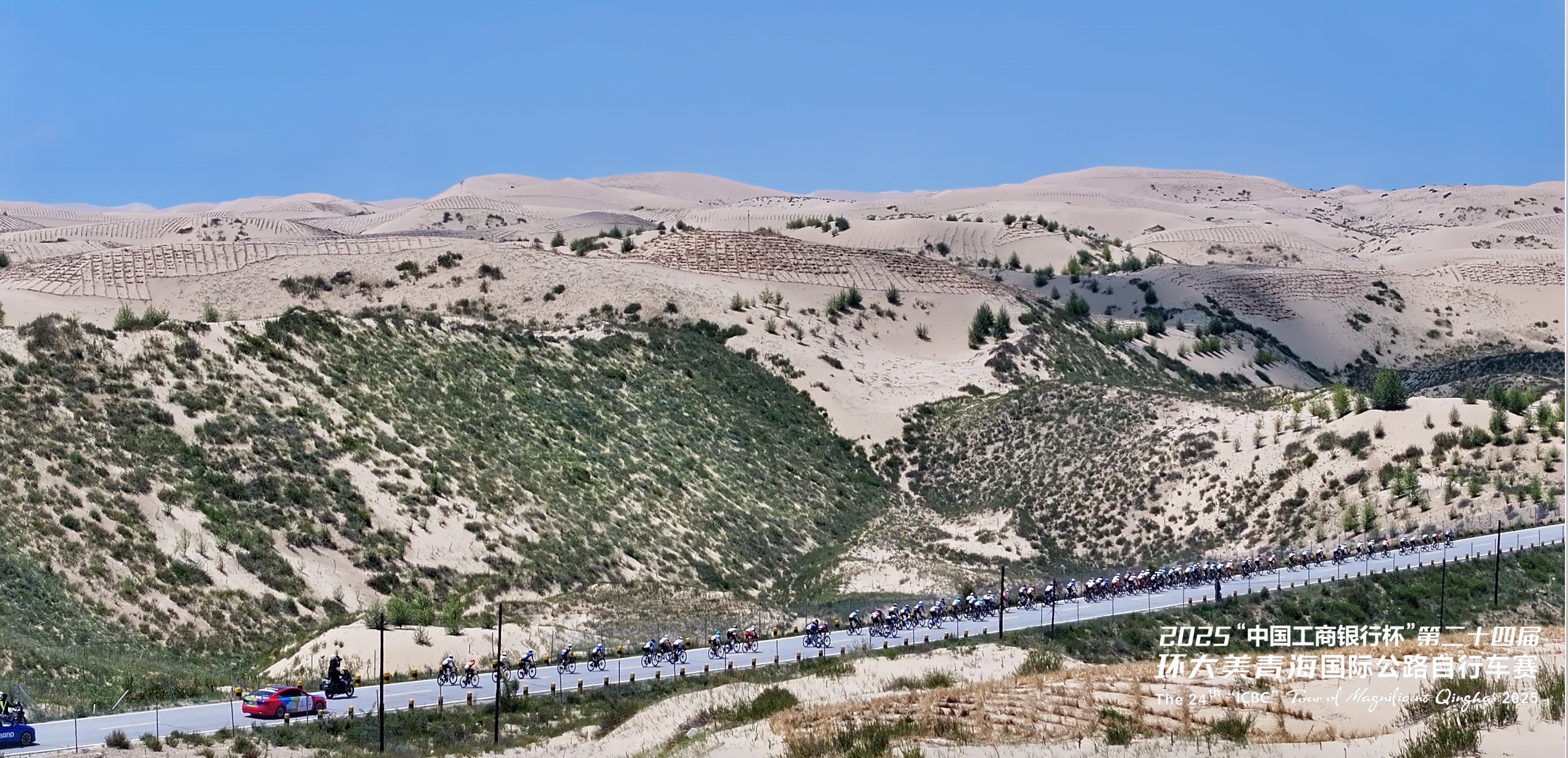 第二十四屆環(huán)青賽第六賽段——?jiǎng)偛?共和賽段,是本屆賽事距離最長(zhǎng)的賽段。車(chē)隊(duì)出發(fā)后不久便駛?cè)胫沫h(huán)湖公路,這段標(biāo)志性賽程承載著環(huán)青海湖賽事的精髓和回憶。作為環(huán)青賽的前身,環(huán)湖賽段以其獨(dú)特魅力吸引著全球騎行愛(ài)好者,人們沿著賽事路線打卡騎行,盡情領(lǐng)略青海湖畔的壯美風(fēng)光。