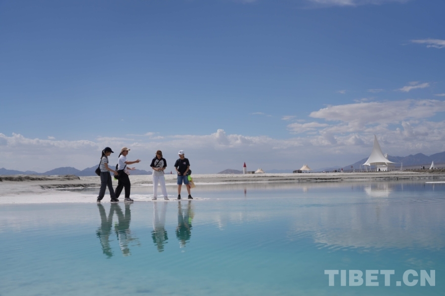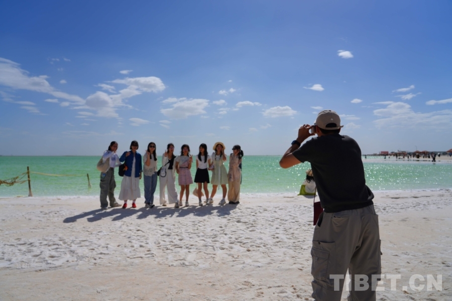 在海西蒙古族藏族自治州格爾木市,海拔2670米的察爾汗鹽湖,翠綠之美令人震撼,風(fēng)起波動(dòng),湖面如碎鉆鋪就的星河;天然形成的鹽花形態(tài)各異宛如珊瑚叢生,在陽光下,閃耀著璀璨的光芒;浮在鹵水上的“萬丈鹽橋”延伸至天際,橫跨湖面,還有周邊的現(xiàn)代化采鹽船,輸鹵管道,車來車往,工業(yè)設(shè)施與自然景觀形成強(qiáng)烈對(duì)比。來自妙法寺劉金龍中學(xué)三位女生欣賞著美景,也紛紛討論這次令人驚嘆的“自然課堂”。鐘澄情同學(xué)不自禁感慨:“這里跟網(wǎng)上宣傳的一樣美!就像是上帝打翻的蘋果汁?!痹袂缤瑢W(xué)驚嘆道:“曾經(jīng)我只聽說過茶卡鹽湖,來到這里才知道察爾汗鹽湖是中國(guó)最大、世界第二大的鹽湖,面積相當(dāng)于56個(gè)茶卡鹽湖,鹽儲(chǔ)量可以讓全球80億人吃上兩千年。”而許馨月同學(xué)更加震撼這里工業(yè)與自然相互交融的獨(dú)特魅力,直呼這是一座真正的“寶庫”!