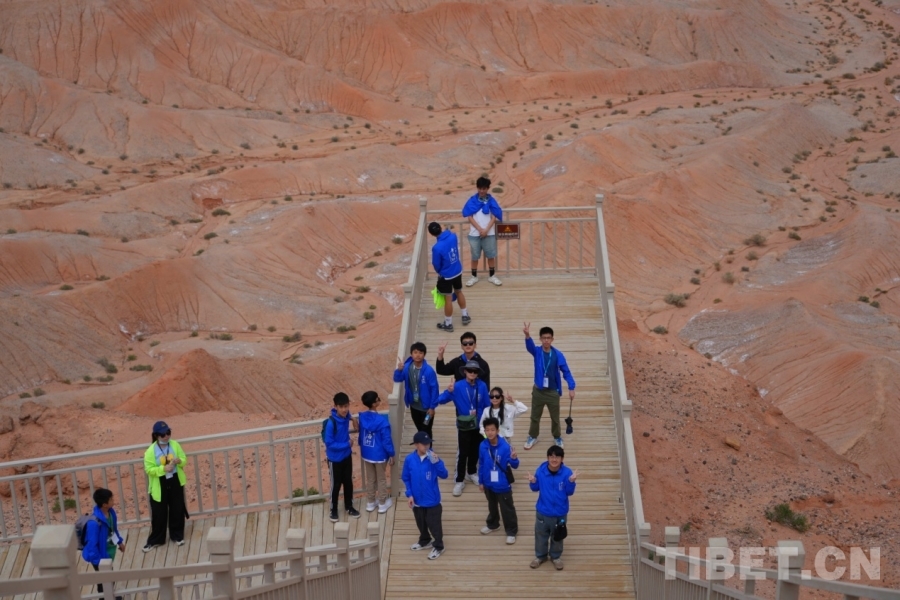 圖為香港青少年在海西蒙古族藏族自治州大柴旦紅崖火星地貌景觀區(qū) 攝影:王茜