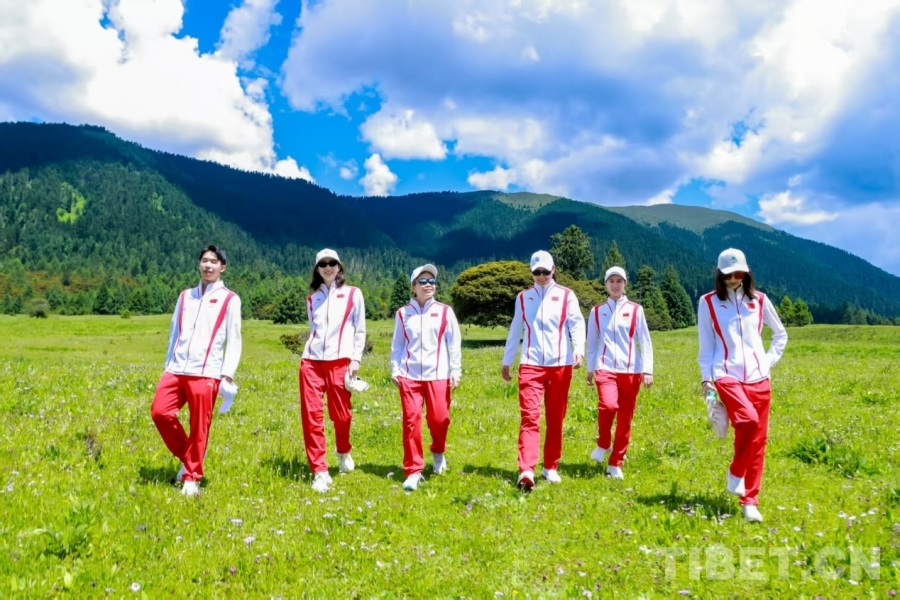圖為奧運冠軍走進魯朗鎮(zhèn)高山牧場,被牧場風(fēng)光深深吸引