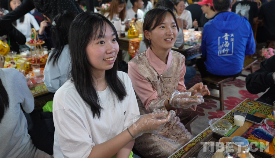 圖為香港學生和青海學生展示制作的糌粑 攝影:王茜