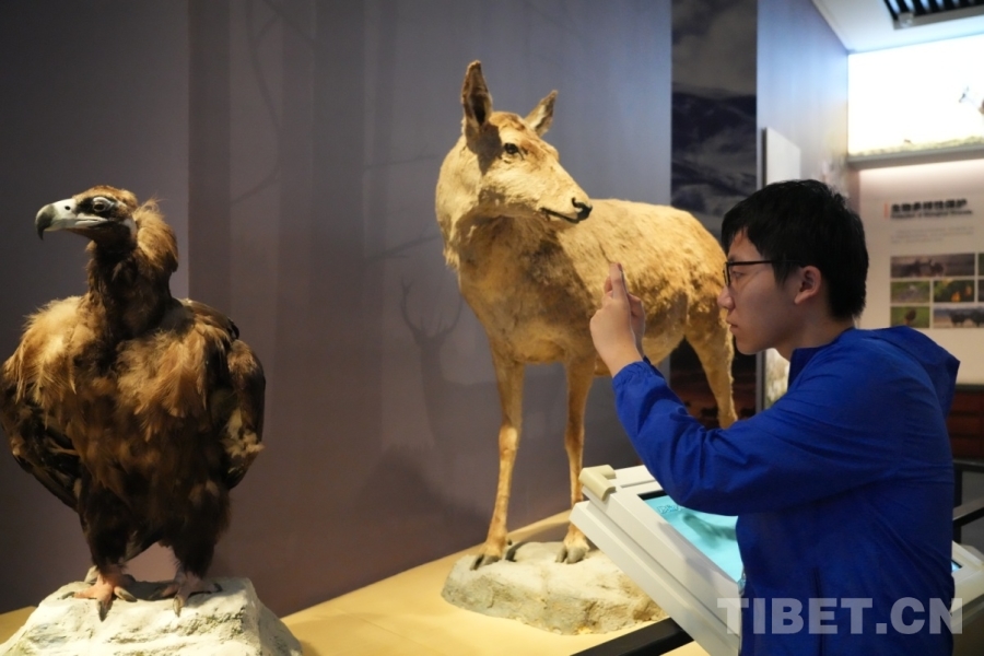 圖為香港學生黃天桃在青海省自然資源博物館里拍攝標本 攝影:王茜