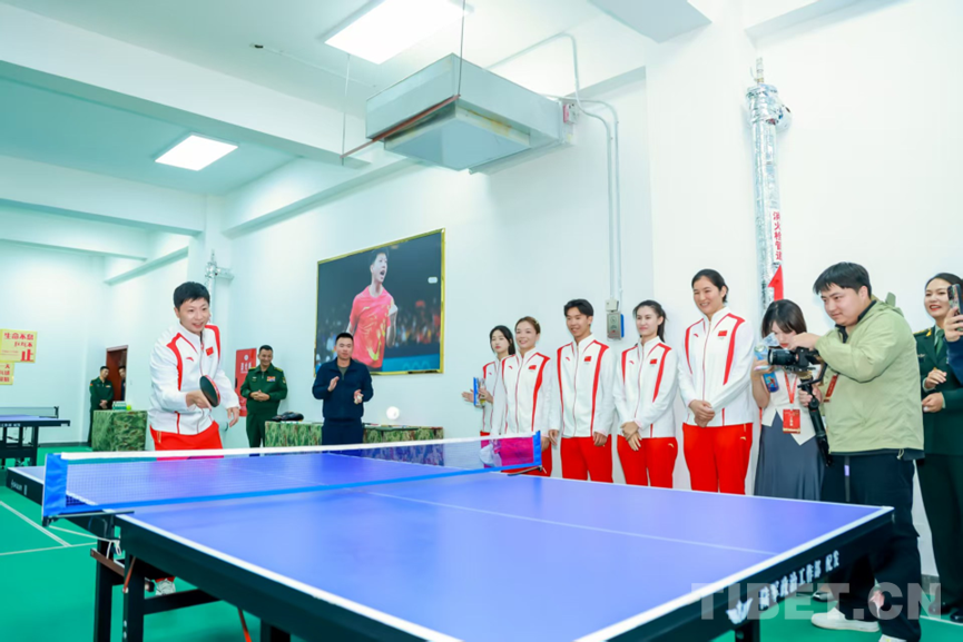 當(dāng)天下午,奧運(yùn)冠軍一行來(lái)到西藏軍區(qū)某部,與軍區(qū)官兵互動(dòng)交流,共話拼搏歲月,共敘家國(guó)情懷。