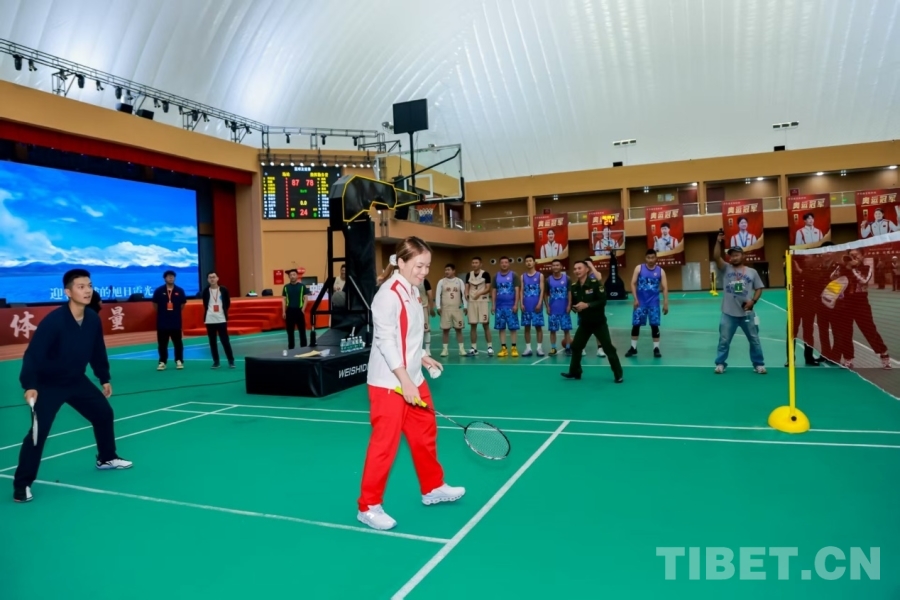 圖為奧運(yùn)冠軍一行來(lái)到西藏軍區(qū)某部