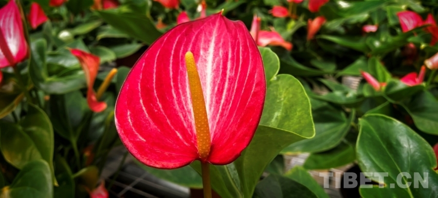 圖為才納園區(qū)的紅掌花卉 攝影:劉莉