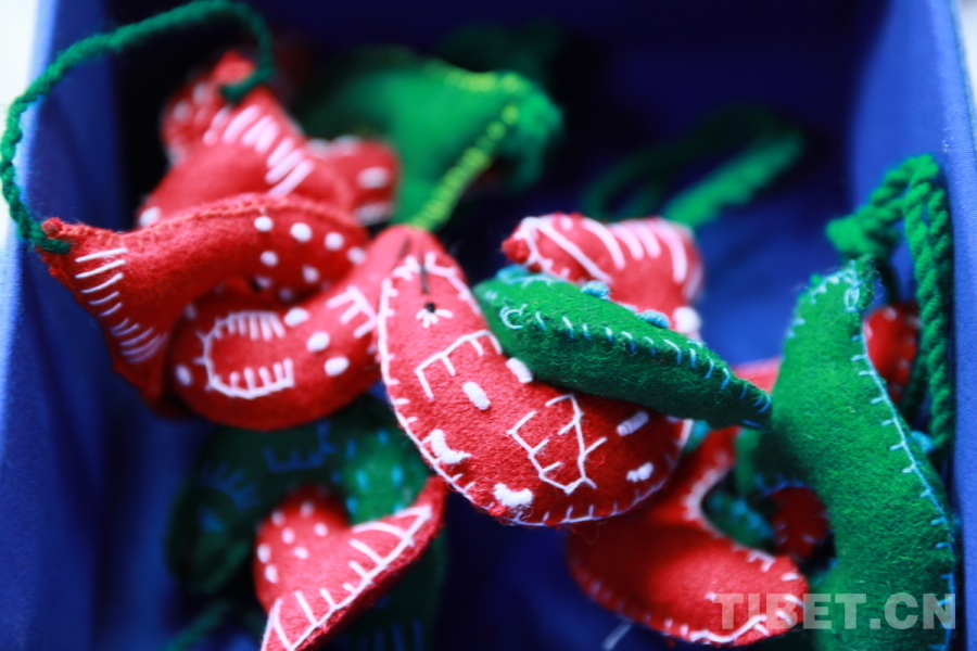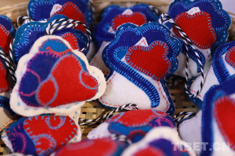 達(dá)娃片多介紹,店里大部分商品都是一針一線的純手工作品,制作者是來自西藏各地的群眾。公司會(huì)派出老師到西藏各地為群眾進(jìn)行手工藝品制作培訓(xùn),并提供原材料和手工藝品訂單,從而形成手工藝品產(chǎn)銷合作關(guān)系,幫助群眾增加收入。經(jīng)過近20年的堅(jiān)持和探索,現(xiàn)在已經(jīng)有500多位西藏各地女性參與制作。