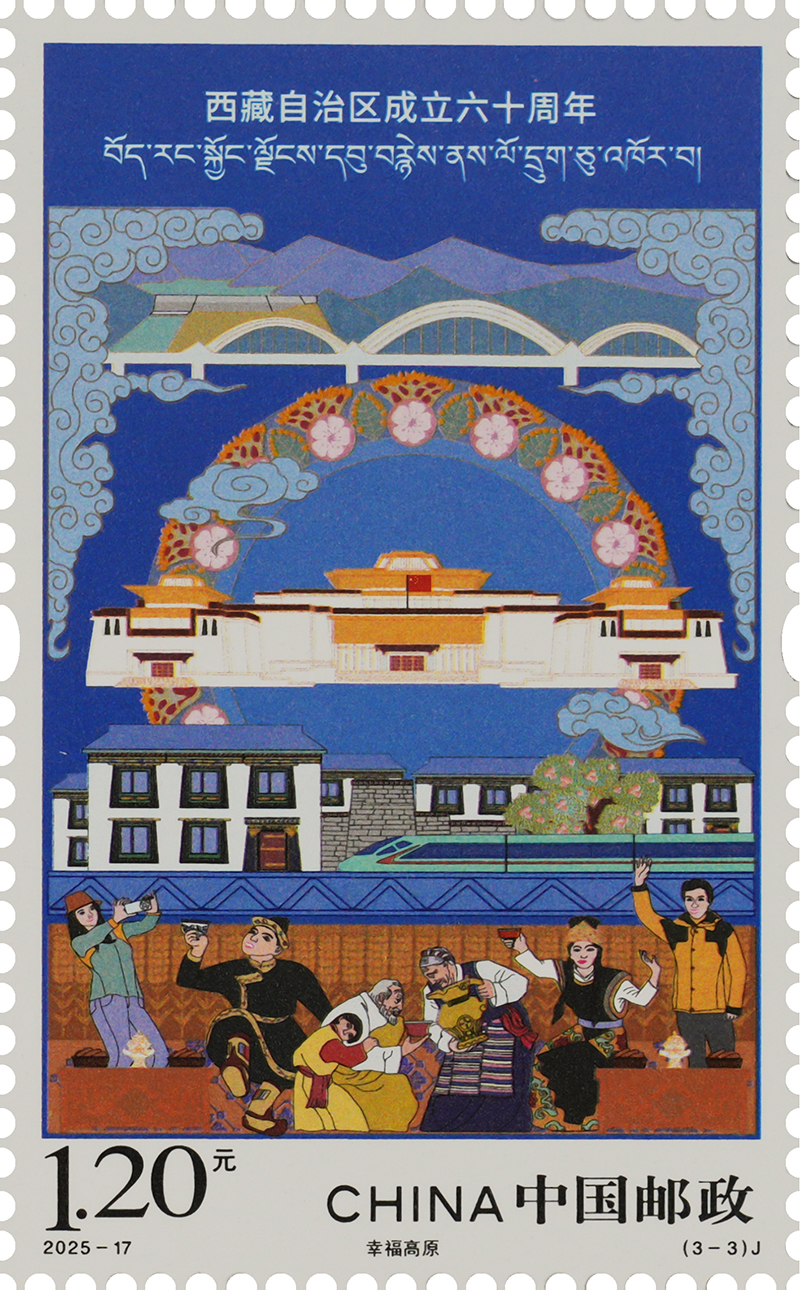 圖為《西藏自治區(qū)成立六十周年》紀念郵票之“幸福高原” 中國郵政西藏分公司供圖