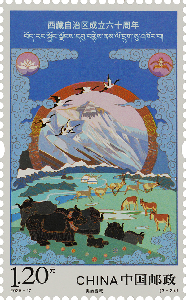 圖為《西藏自治區(qū)成立六十周年》紀念郵票之“美麗雪域” 中國郵政西藏分公司供圖