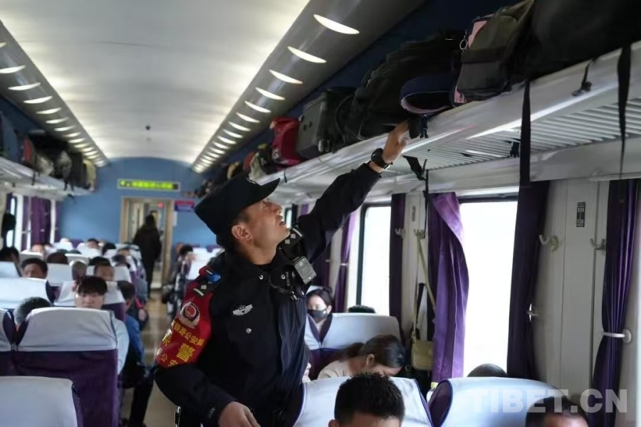 “看好自己的包!貴重物品貼身保管,不要大意了?!薄巴砩纤X,各位一定要蓋好被子,高反很嚴(yán)重!”……拉薩鐵路公安處乘警米瑪次仁的“碎碎念”,是高原列車上最動(dòng)聽的序曲。他的腳步在車廂過道里來回穿梭,一句句叮囑如同細(xì)密的針腳,慢慢織進(jìn)旅客的旅途里。