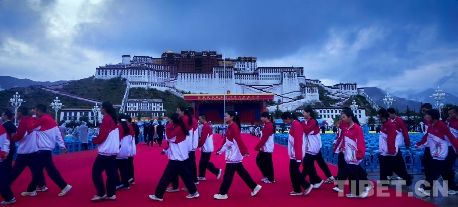 圖為拉薩市北京中學(xué)師生入場(chǎng) 攝影:劉莉