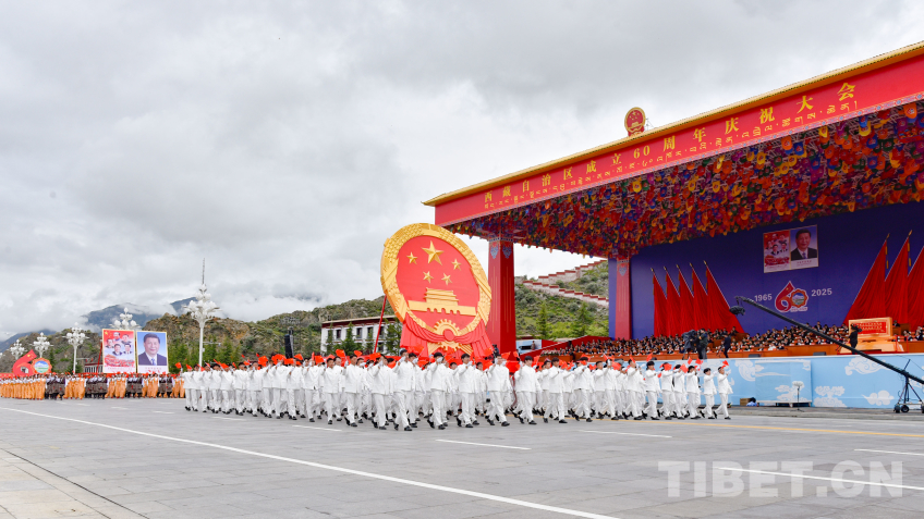 圖為西藏自治區(qū)成立60周年慶祝大會解放軍方隊 攝影:趙振宇