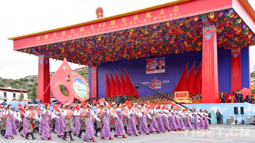 圖為西藏自治區(qū)成立60周年慶祝大會群眾游行 攝影:趙振宇