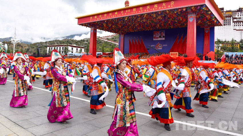 中國西藏網(wǎng)訊 8月21日上午,西藏自治區(qū)成立60周年慶祝大會在拉薩隆重舉行。慶祝大會舉行充滿吉祥喜慶氣氛的盛大群眾游行。游行分為“旗幟引領(lǐng)”“四件大事”“奮進新時代”“走向未來”4個單元,26個群眾游行方隊、彩車,在歡快的音樂中依次行進。各族群眾身著絢麗多彩的服飾,跳起熱情歡快的舞蹈,表達過上幸福生活的喜悅之情、對黨和國家的感恩之情。(中國西藏網(wǎng) 記者/王淑 趙振宇 德吉卓瑪 次旦拉姆 旦曲 賈華加 趙釗 姚浩然 劉莉 邊子捷 馮重霖 楊眉笑)