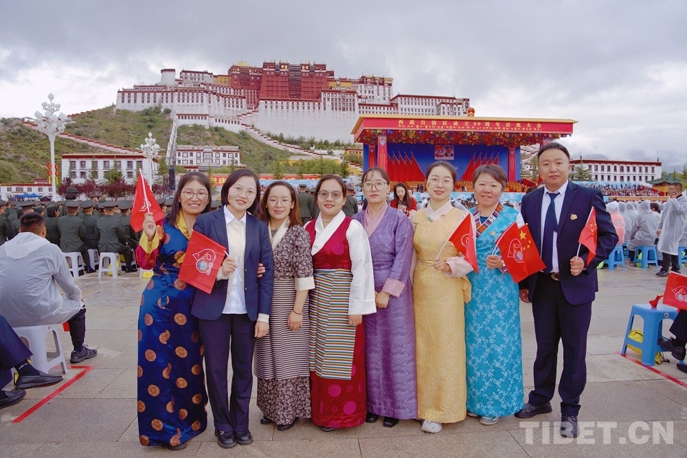 圖為參加慶祝大會的拉薩海關(guān)工作人員留影 攝影:楊眉笑