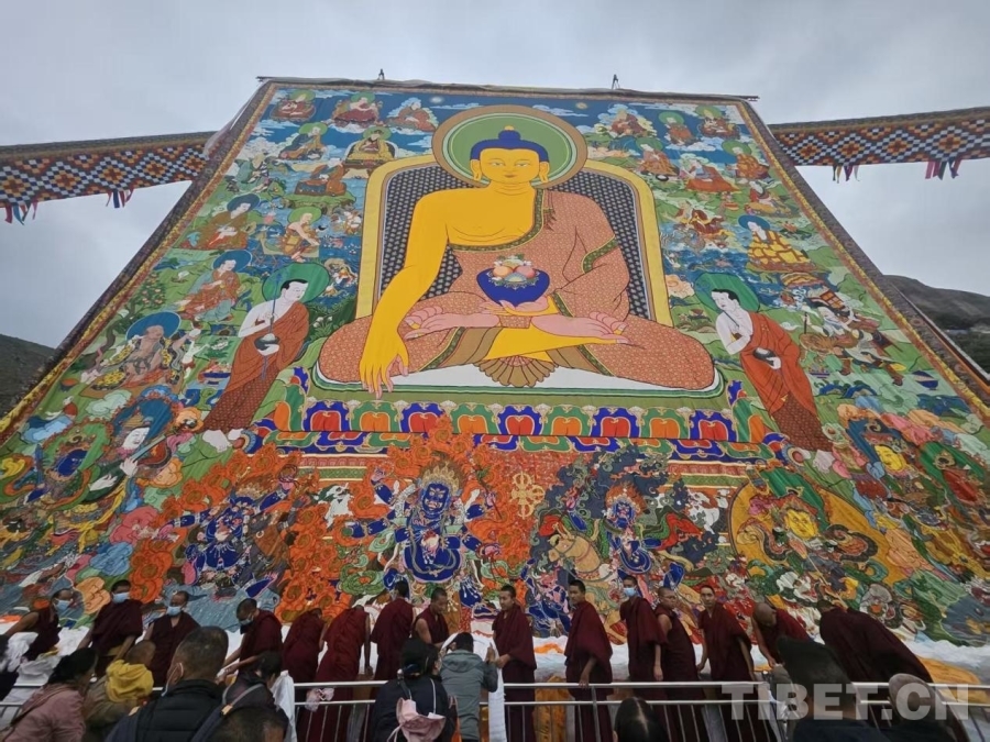 中國(guó)西藏網(wǎng)訊 8月23日晨,西藏自治區(qū)拉薩市色拉寺舉行展佛活動(dòng),展出巨幅釋迦牟尼佛唐卡,標(biāo)志著一年一度的拉薩雪頓節(jié)拉開了序幕。