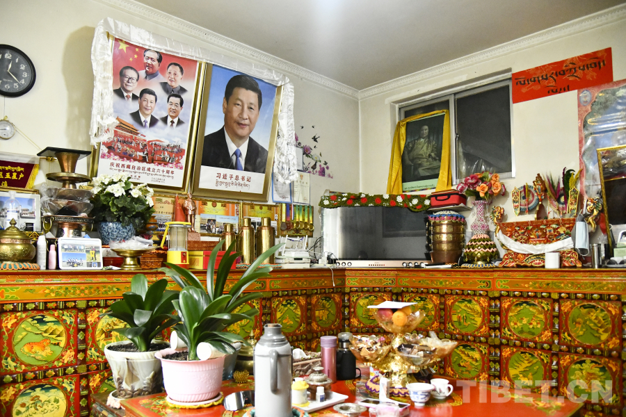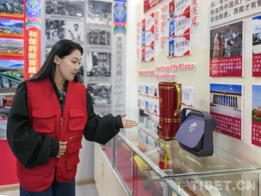 在社區(qū)回憶館內(nèi),有一排展柜精心展出了歷年來中央代表團(tuán)贈(zèng)予西藏各族各界干部群眾的禮物。從西藏自治區(qū)成立三十周年時(shí)的鐘表,到西藏自治區(qū)成立六十周年時(shí)的全自動(dòng)酥油茶壺,德吉措姆說這些禮物滿載著黨中央對西藏各族群眾深情厚誼,每一件禮物都是當(dāng)時(shí)各族群眾日常生活所切實(shí)需要的,禮物的變化也見證著西藏各族群眾生活的變化。