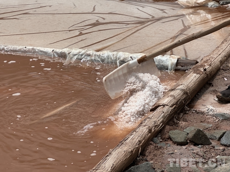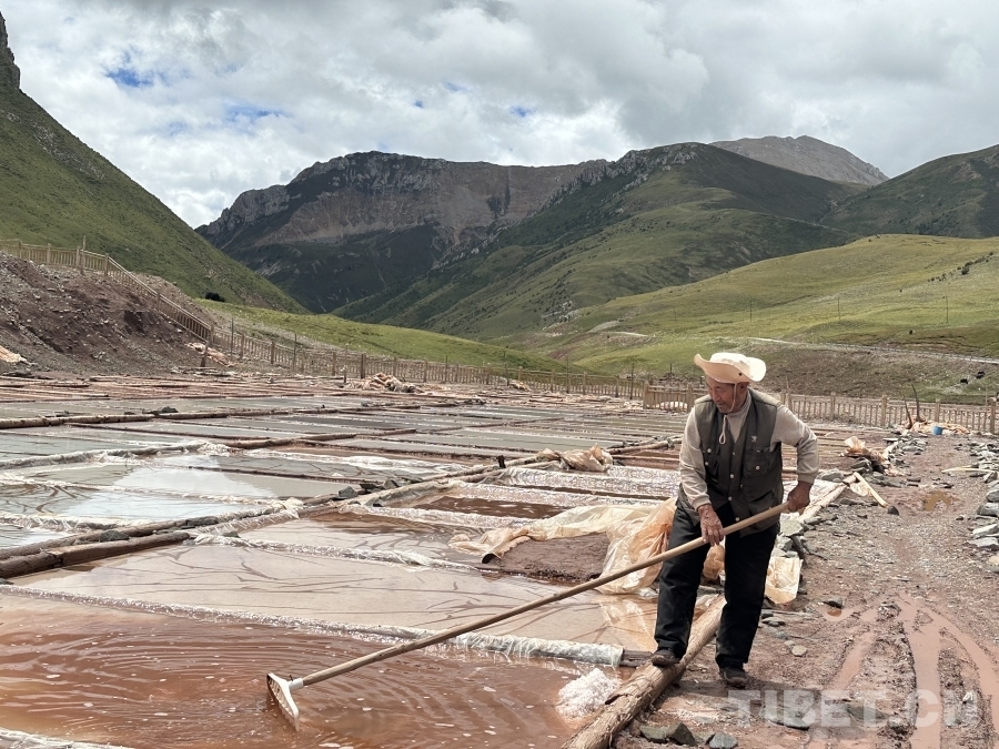 鹽田里,78歲的江羊巴桑正彎腰勞作,傳承著千年不變的制鹽技藝。江羊巴桑是白扎鹽場的一名鹽工,鹽是他們一家人賴以生存的東西,父輩靠鹽養(yǎng)活了他,他也靠著鹽養(yǎng)大了自己的十一個孩子。這位老鹽工曾在綜藝節(jié)目《種地吧》向觀眾展示了當?shù)厝斯欧ㄖ汽}的智慧。他在節(jié)目中表示:“為了養(yǎng)活一家老小,從小就開始制鹽,一直干到現(xiàn)在。以后無論是我的兒子,還是這個地區(qū)的年輕人,希望未來可以學習并延續(xù)好這一制鹽技藝?!苯虬蜕:唵味鎿吹脑竿?,就是希望這種傳統(tǒng)的手工制鹽能夠代代相傳。