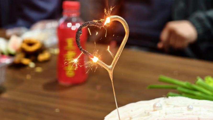 圖為在正在燃燒的愛心蠟燭點(diǎn)亮七夕活動