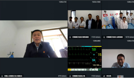醫(yī)院現(xiàn)場(chǎng)連線普蘭縣巴嘎鄉(xiāng)衛(wèi)生院,值班醫(yī)生向中央代表團(tuán)成員匯報(bào)情況,圖像、聲音都很清晰,可以看到心電監(jiān)護(hù)的整個(gè)情況,代表團(tuán)成員對(duì)這一技術(shù)表示肯定。